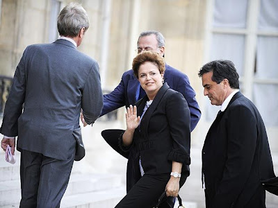 Em sua visita de dois dias à capital francesa, Dilma teve encontro com o presidente Nicolas Sarkozy, ao qual chegou acompanhada do embaixador brasileiro em Paris, José Bustani. Sarkozy foi fotografado com a candidata na saída, deu-lhe um beijinho. Dilma falou que o encontro "Foi muito bom, muito gentil", disse, observando que falaram da parceria estratégica bilateral.